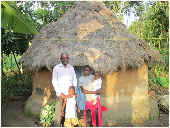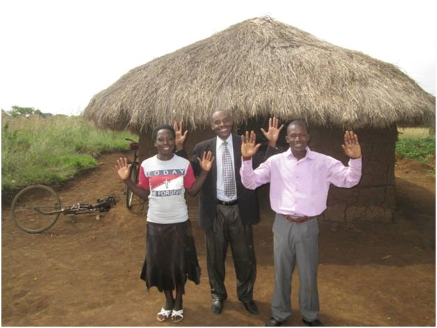 Pastor Erustus with Pastors Wycliffe and his wife Violet in front of the church that was planted in Uganda.